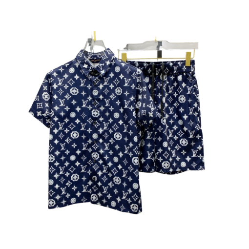LV Monogram Print Navy Blue Shirt And Shorts Set