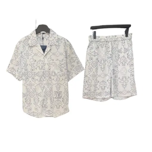 LV Monogram Printed Shirt And Shorts Set White