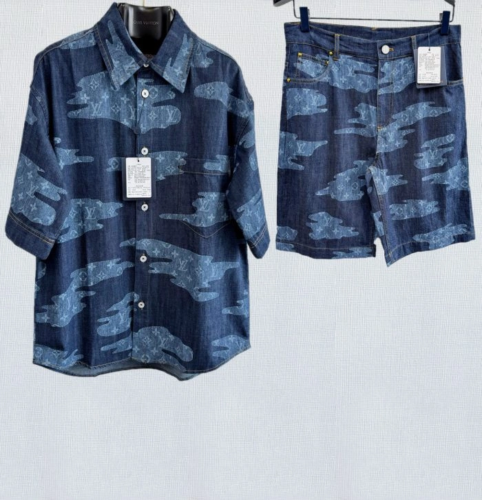 LV Denim Baseball Shirt Black Paste Check