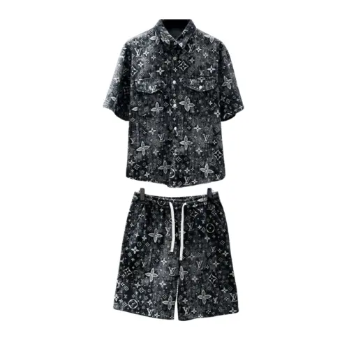 LV Monogram Short-Sleeved Denim Shirt And Shorts Set