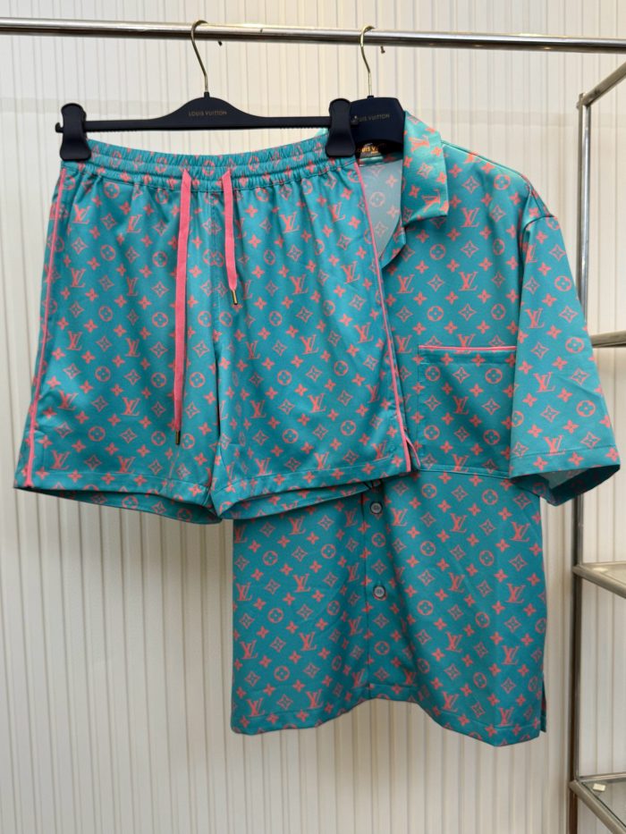 LV Monogram Short-Sleeved Chambray Shirt Blue Denim