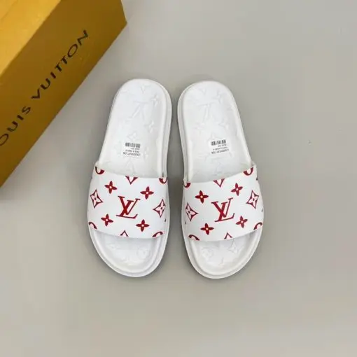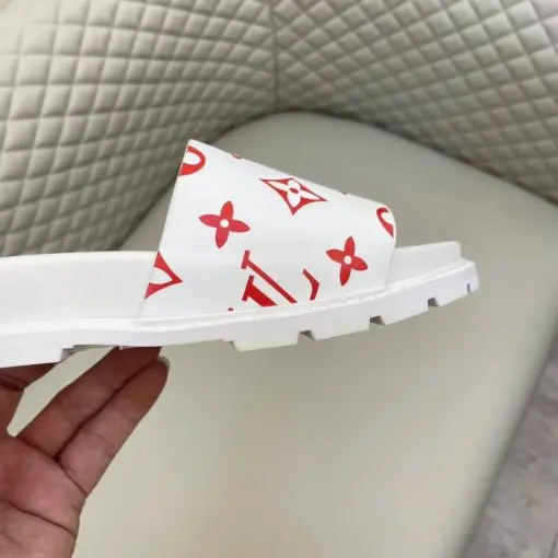 LV Monogram White Slipper With Red Logo On Slides