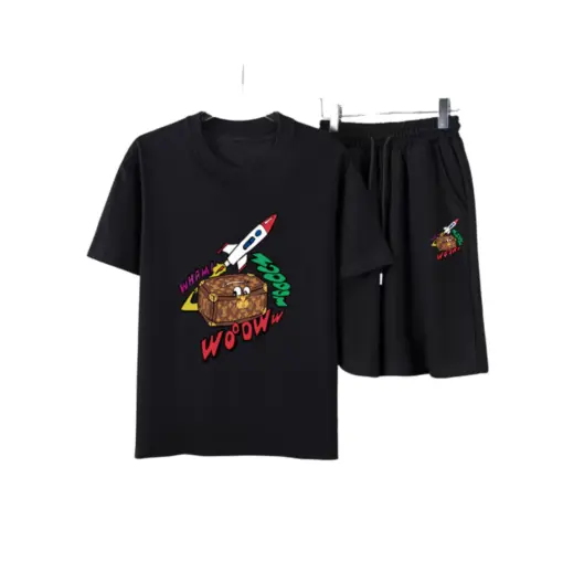 LV Playful Cartoon Rocket T-Shirt And Shorts Set Black