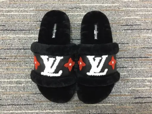 LV Bom Dia Shearling Slide Sandal Beige And Black