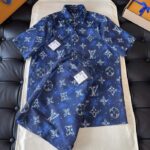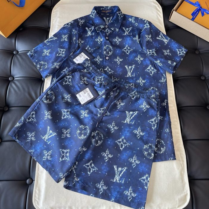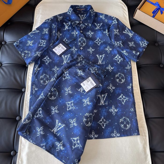 LV Damier Chambray Short-Sleeved Suite Set Multicolor