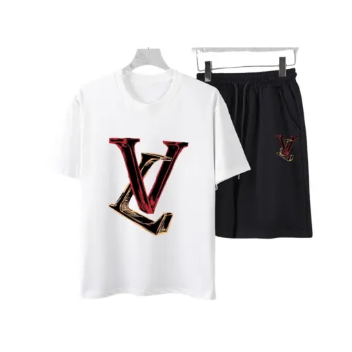 LV Red And Black 3D Graphic Letter Print T-Shirt And Shorts Set White
