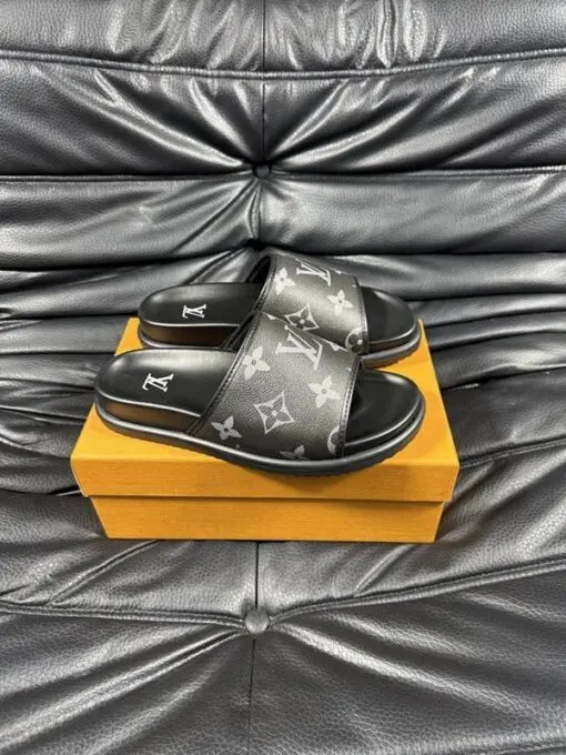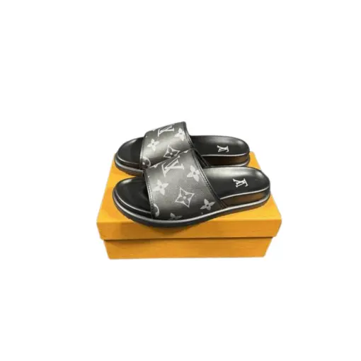 LV Slipper 6AM Flat Mule Black With Logo Multicolour
