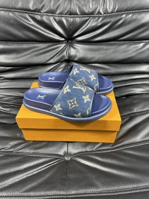 LV Slipper 6AM Flat Mule Black With Chocolate Strap
