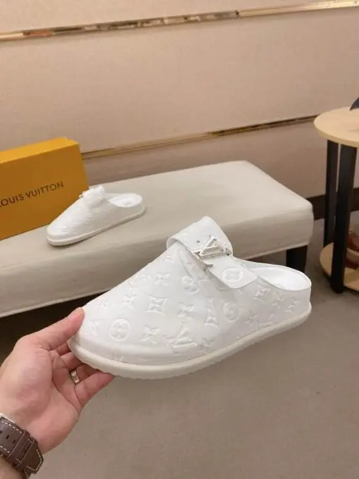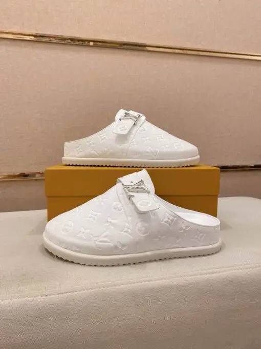 LV Slipper 6AM Flat Mule Black With Other Canvas Brown