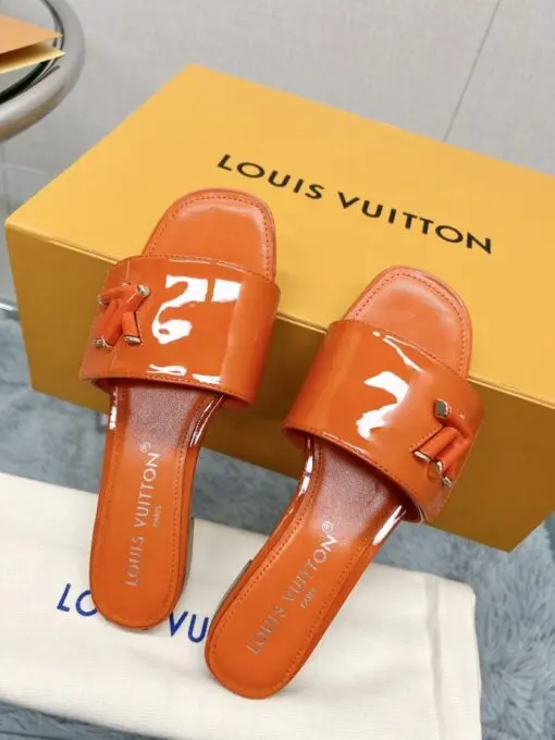LV Sunset Comfort Mule Plush Shearling Material Crossover Straps Embellished White Fluffy Slipper