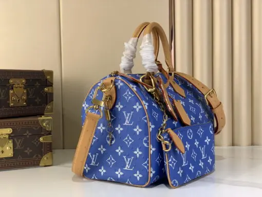 LV Speedy P9 Bandouliere 25 Handbag Blue Monogram Calfskin Leather