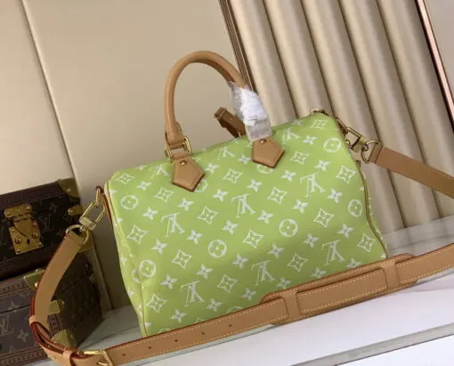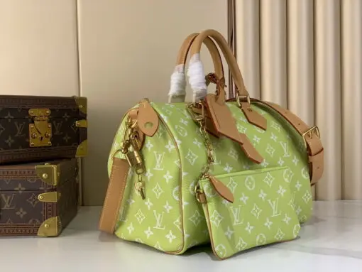 LV Speedy P9 Bandouliere 25 Handbag Lime Vert Monogram Calfskin Leather