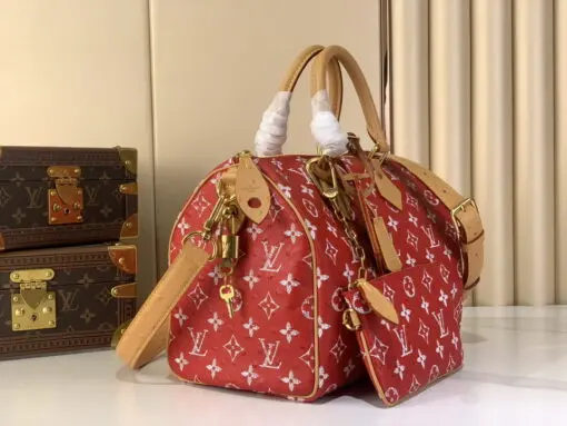 LV Speedy P9 Bandouliere 25 Handbag Rouge Monogram Calfskin Leather