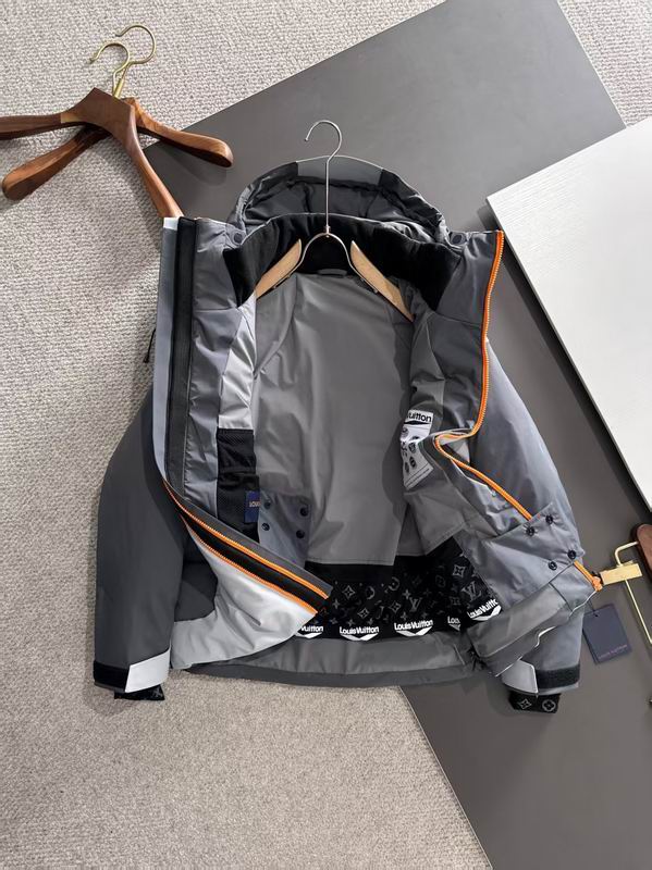 LV Technical Down Ski Jacket Gray Tones Orange zipper