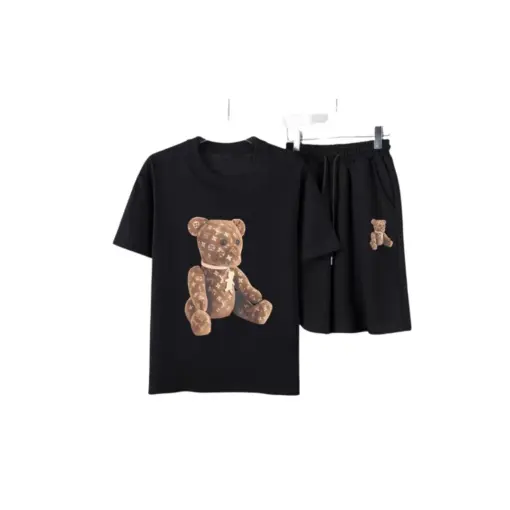 LV Teddy Bear Print T-Shirt And Shorts Set Black
