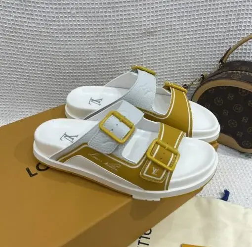 Be the first to review “LV Trainer Mules Yellow Grey”