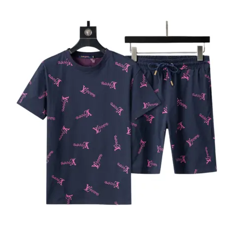 “LV Vers” Printed T-Shirt And Shorts Set Navy