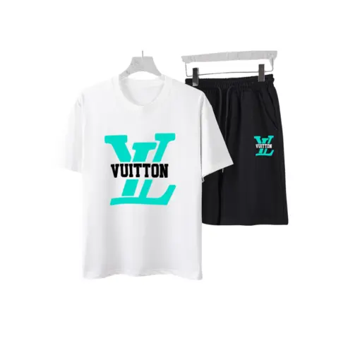 LV “VUITTON” Print T-Shirt And Shorts Set White