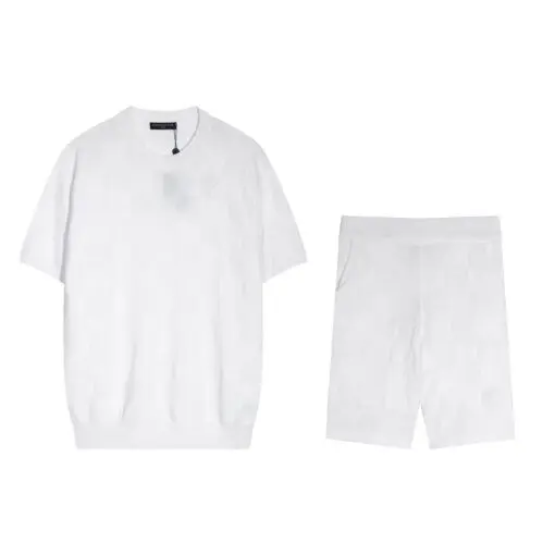 LV White Short-Sleeved Knitted T-Shirt And Shorts Set