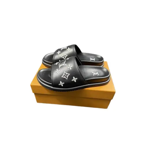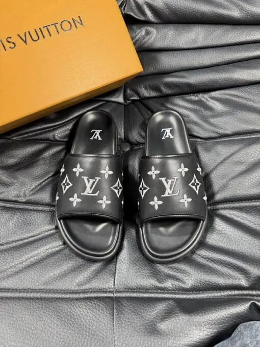 LV x Takashi Murakami Slipper 6AM Flat Mule Black With Yellow Logo