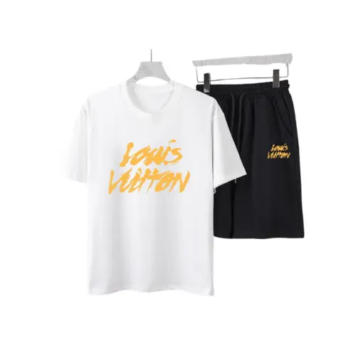 LV Yellow Graphic Print T-Shirt And Shorts Set White