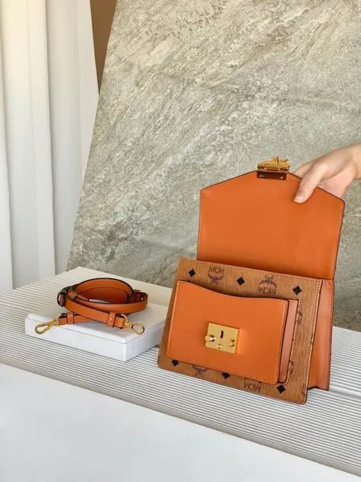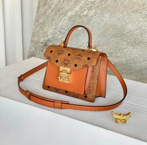 MCM Small Tracy Monogram Cross Body Bag Brown