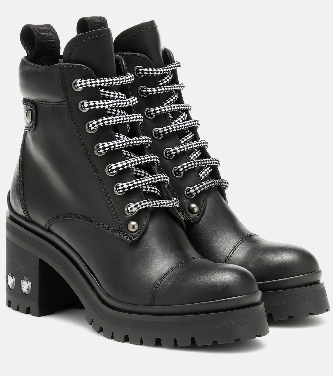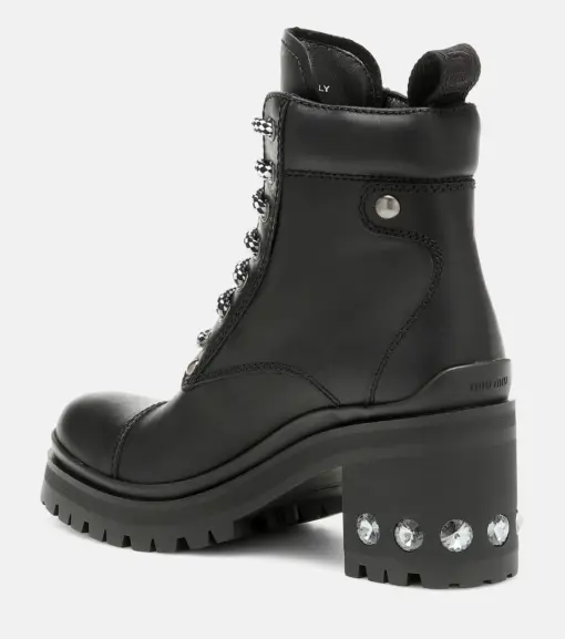 Miu Miu Leather Ankle Dimond Boots Black