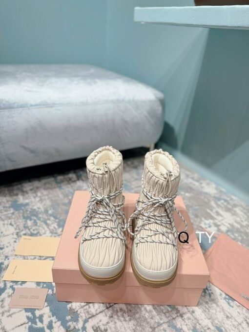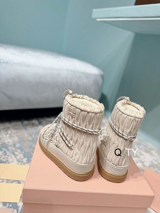 Miu Miu Matelassé Nylon Ankle Snow Boots White