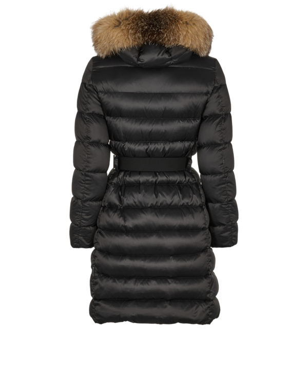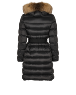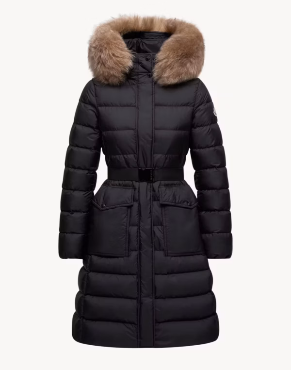 Moncler Leersie Hooded Shearling-Trimmed Long Down Jacket Black