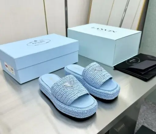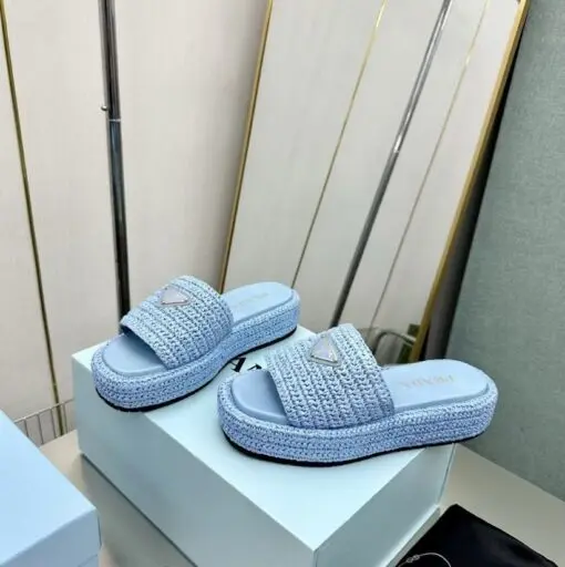 Prada Crochet flatform slides black
