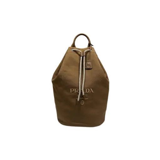 Prada Ivory Blue Striped Canvas Brown Duffel Backpack