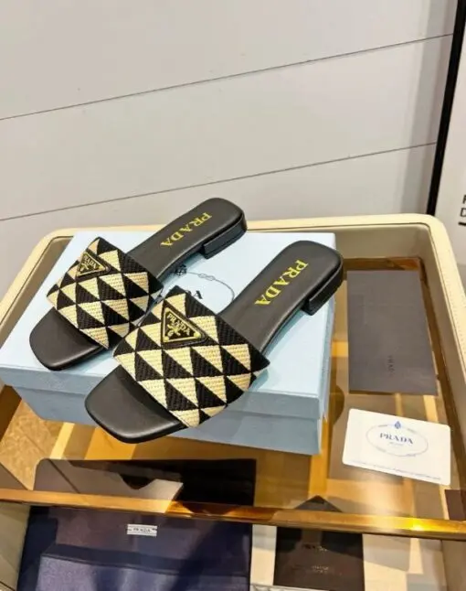 Prada Quilted Nappa Leather Slides Moos Green
