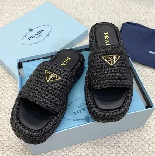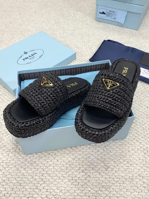 Prada Raffia Flatform Slide Sandal White Beige