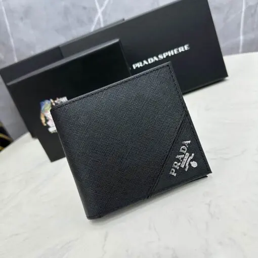 Prada Large Triangle-Motif Leather Wallet Black