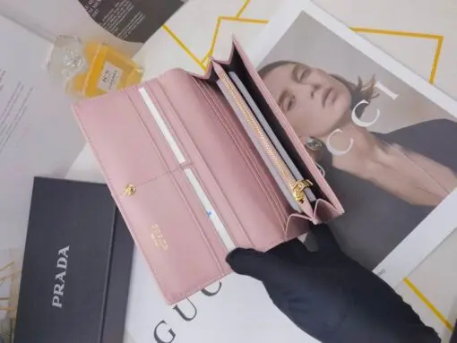 Prada Saffiano Leather Long Wallet Shiny Golden