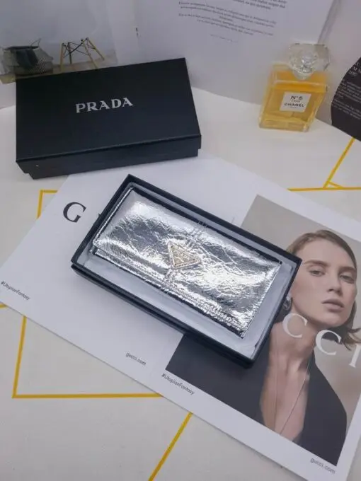 Prada Saffiano Leather Long Wallet Shiny Golden