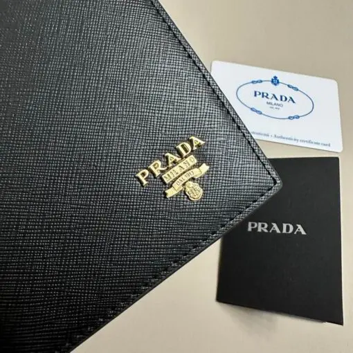 Prada Saffiano Leather Wallet Zip-Around Style Black