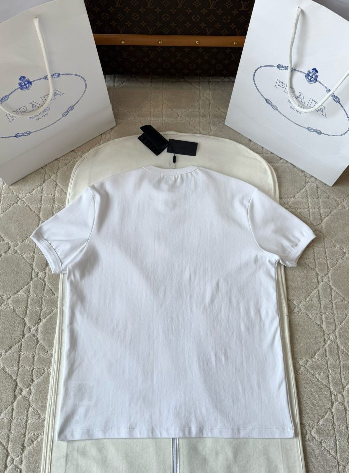 Prada Beyaz Men Short Sleeve Pique Polo T-Shirt Black