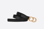 The Saddle belt has become an icon of the House and a wardrobe classic. Ultra-smooth calfskin gives it a soft feel and a stylish finish. This black model features an aged metal “CD” buckle with a gold finish and a slim silhouette that will shape your skirts, pants and dresses.