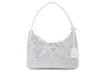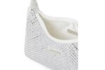This mini hobo bag, an iconic Prada style, comes in a luxurious satin version studded with crystals and decorated with the emblematic enamel triangle logo.