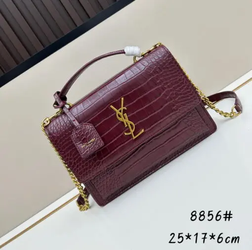 YSL Sunset Medium Chain Bag in Crocodile Maroon